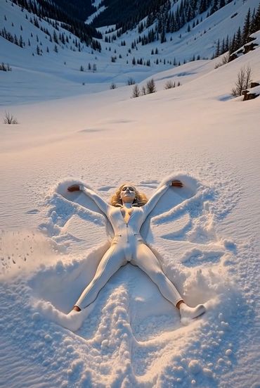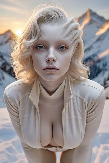 Now on Earth she reads in libraries, watches sunsets over mountains, catalogs every snowflake. Pale skin blends with winter; she wears simple white layers.