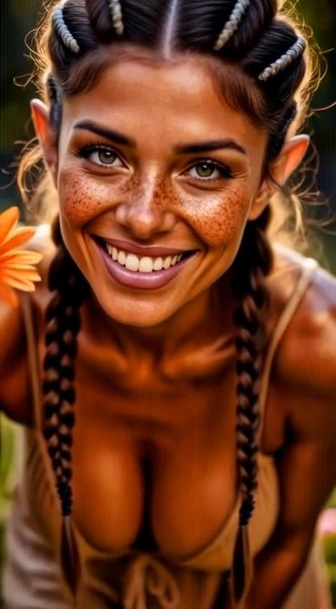 Now on Earth she soaks up sun, dances in parks, picks wildflowers, smiles at strangers. Copper skin shimmers like molten metal when she's angry or excited; she hides it under light dresses and lotion.